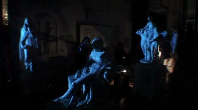 During the performance audience members of all ages were invited explore the gallery, immersed in overlapping sound and music, observing audio reactive visual projections mapped onto the Walker's collection of neo-classical sculptures.
